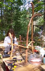 If I hold classes they would be posted on my home page but there will be no classes in 2007 Lucy Willemsen makes rustic furniture from locally found white birch, pine, cherry, maple, oak, cedar and various willow when she has the time and is so inspired. This she does just for the fun of it. Building rustic furniture is something that everyone can do and there is no such thing as a mistake, just wonderful discoveries and lots of room for creativity. There are no two pieces alike.