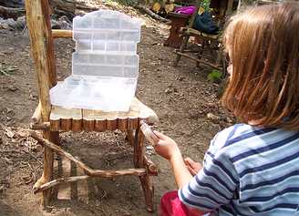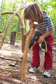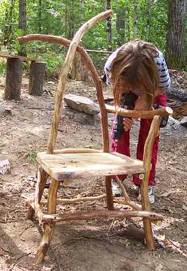 Here are some pictures of the progress of a beautiful chair that my 8 year old niece Meg built this summer (2002) with a bit of instruction, it took about six hours to complete. Her choice was peeled cedar which was a bit of extra work for her. This chair has a special place in her bedroom.